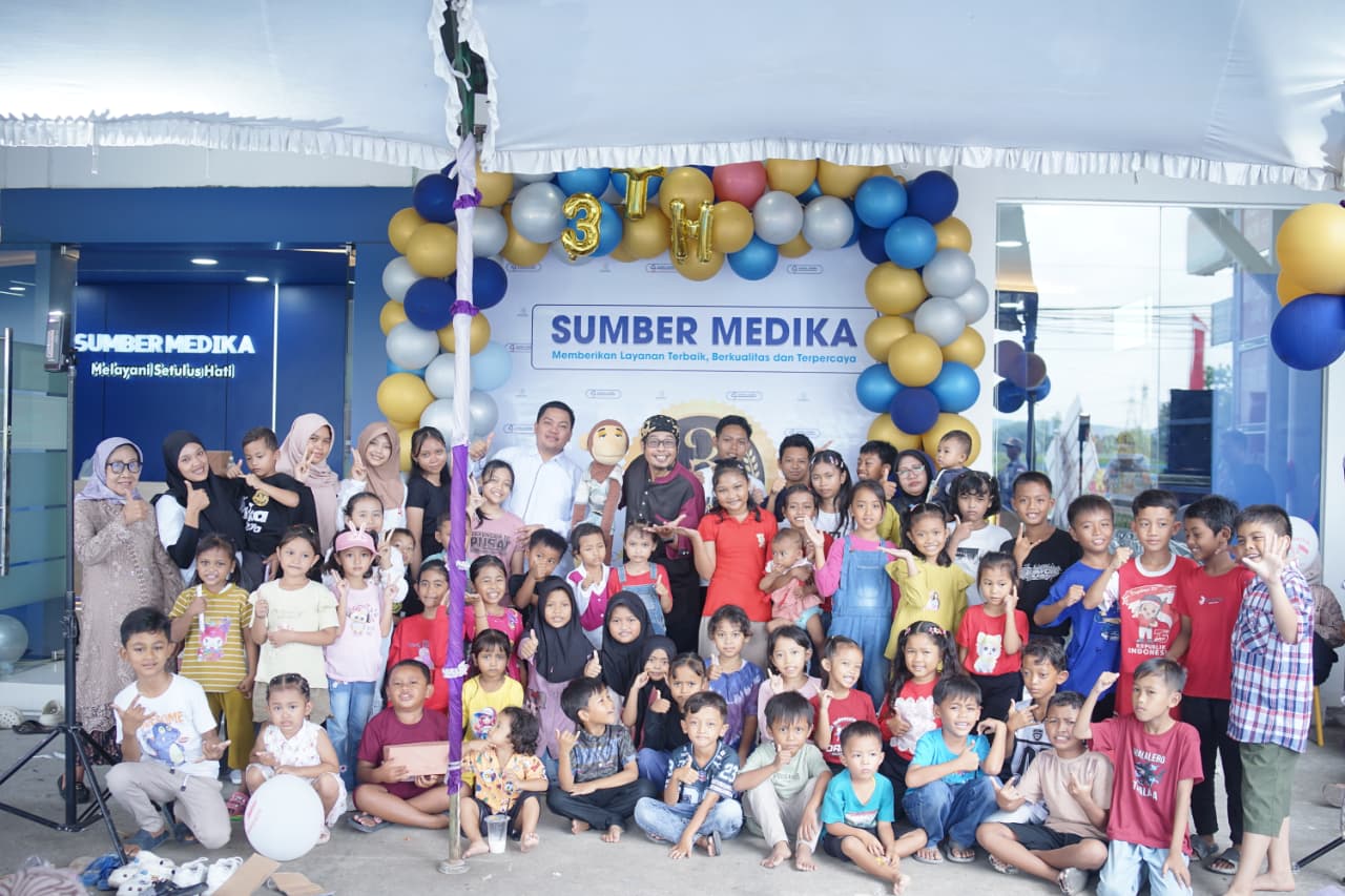 Pemilik Apotek Sumber Medika, Sony Hartono, dalam sambutannya menyampaikan rasa syukur dan mengapresiasi antusiasme masyarakat yang hadir dalam peringatan 3 tahun apotek yang dikelolanya.