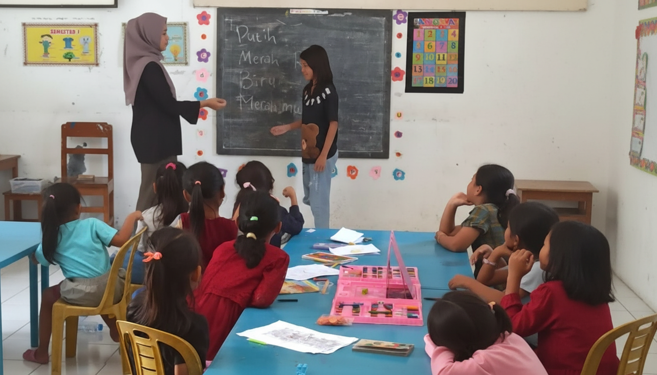 Anak-anak belajar bahasa Jawa melalui bermain susun kata. Kemudian mereka mempelajari bahasa Indonesia melalui menggambar dan bercerita. Terakhir, anak-anak mengenal bahasa Inggris dengan bernyanyi.